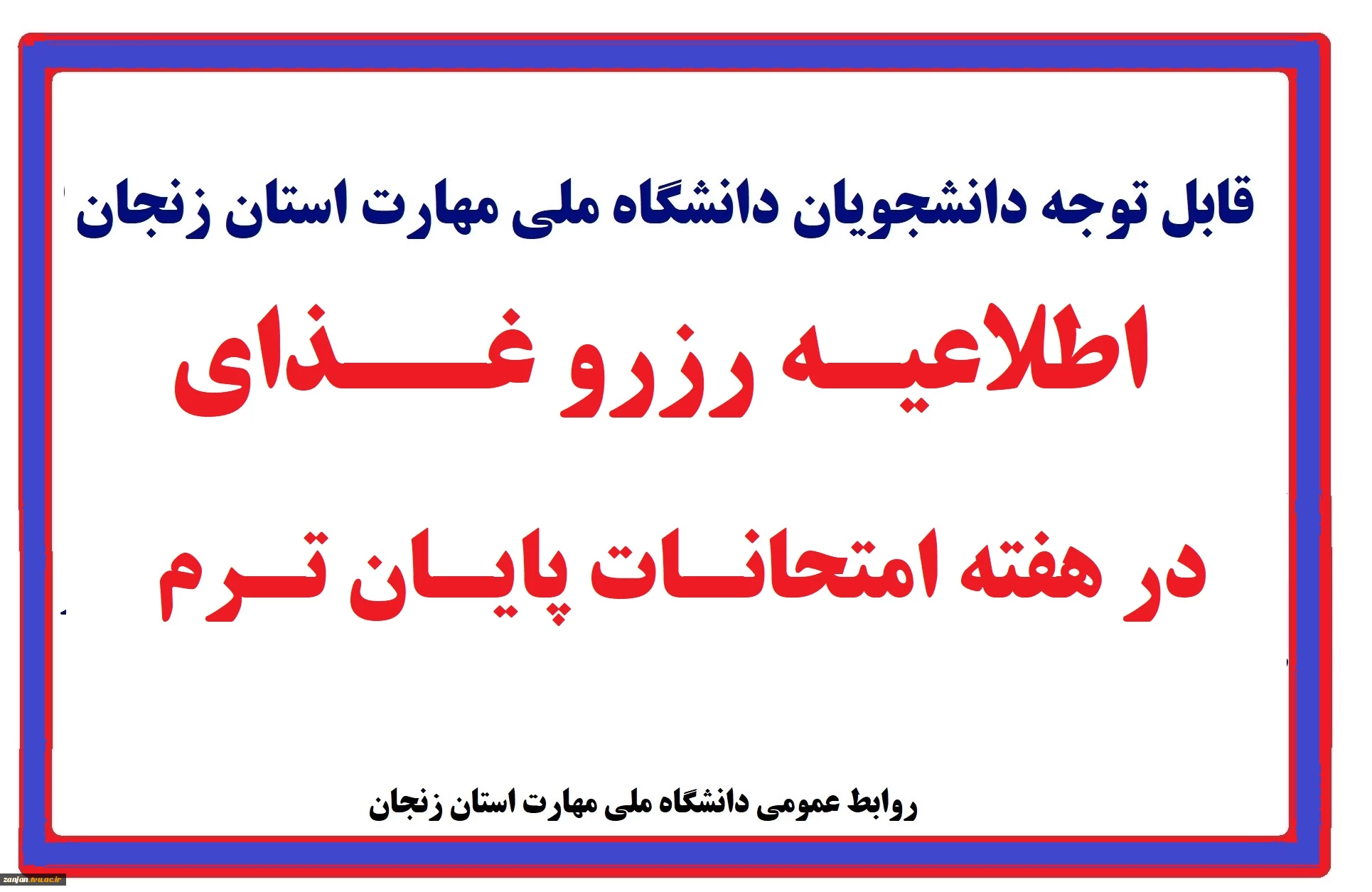 اطلاعیه رزرو غذای در هفته امتحانات پایان ترم 2